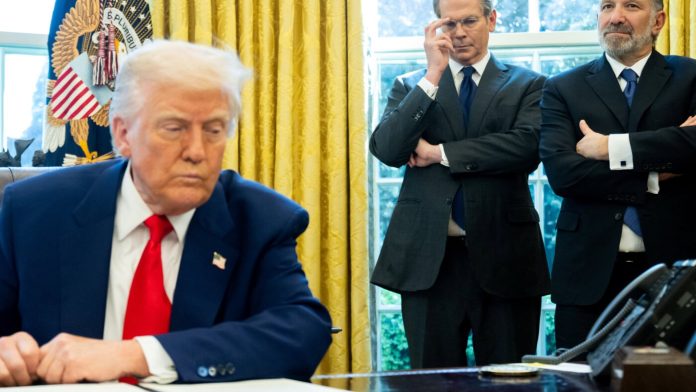 Treasury Secretary Scott Bessent and Commerce Secretary Howard Lutnick with President Trump in the Oval Office on Wednesday.