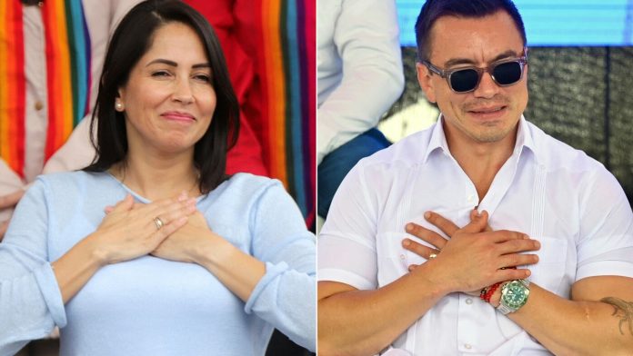 Ecuador’s leftist presidential candidate Luisa Gonzalez on the left and Ecuador’s president and presidential candidate Daniel Noboa on the right.