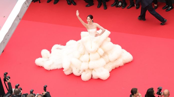 Cannes officials updated the film festival’s dress code this year to ban full nudity and “voluminous” clothing. Above, actor Wan QianHui arrives for the opening ceremony on Tuesday.