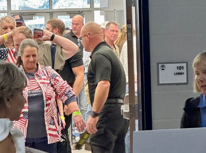 According to Ann Stone, treasurer of the Alachua County Republican Executive Committee, she and other organizers were told by DeSantis’ reelection campaign and the Florida Department of Law Enforcement that the governor would not appear if firearms were allowed inside the building.