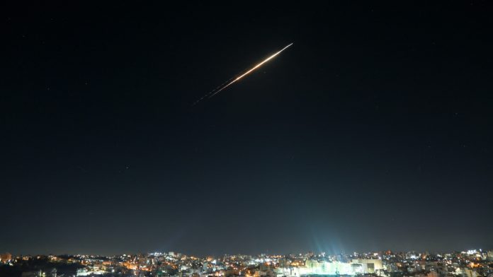 Iranian missiles aimed at targets in Israel pass through the sky of Hebron, West Bank on June 18 as Israeli air defense system tries to intercept them.