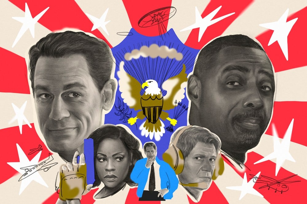 Cena, the WWE wrestler, plays a Hollywood action hero named Will Derringer (whose biggest success was the Water Cobra series) who has recently been elected president. He’s arrogant and a little dense but also charming as hell with a kind heart. Elba, the only actor to have both played Nelson Mandela and get voted People’s Sexiest Man Alive, plays British Prime Minister Sam Clarke, almost at the end of his first term and worn to the nub by the stresses of the job yet deep down still the idealist who bootstrapped himself up from the working class, attended Cambridge, and spent some years in the military.