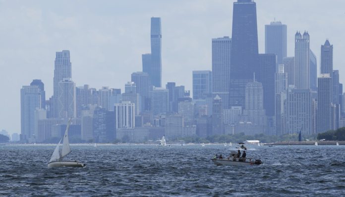 Chicago’s air quality on Monday was considered “unhealthy for sensitive groups” as wildfire smoke from Canada blanketed the area.