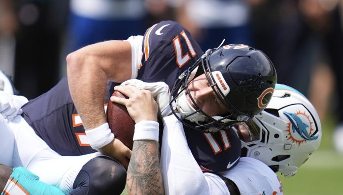 Tagovailoa played one series and completed 5 of 6 passes for 27 yards, while Bears starting quarterback Caleb Williams did not dress.