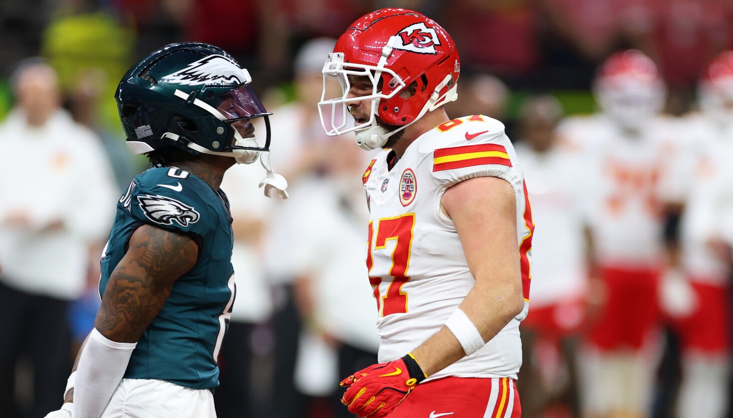 Johnson has 18 interceptions in seven seasons. In Chicago, he’s best known for his antics in two 2020 games. In November, Bears receiver Javon Wims was ejected from a regular season overtime loss for punching Gardner-Johnson, a notorious pest who was once slugged by his own teammate, Michael Thomas, in New Orleans.