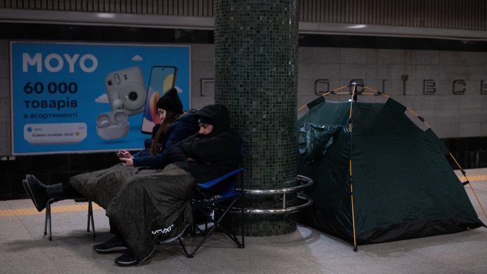People take shelter in a subway station during Russia’s night missile and drone attack in Kyiv, Ukraine, on Saturday, Jan. 24, 2026.