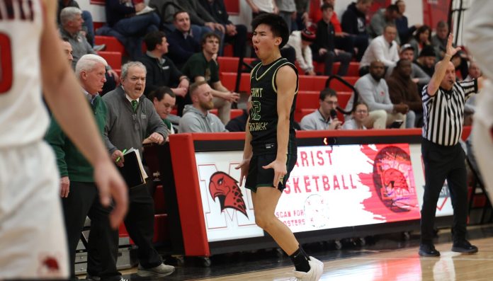 That didn’t happen. Junior guard Steven Quach and senior guard Joseph Costanzo kept St. Patrick settled, Jimmy Czeslawski checked in and was a scoring threat and 6-7 Omar Ajanovic anchored the Shamrocks’ defense in the post.