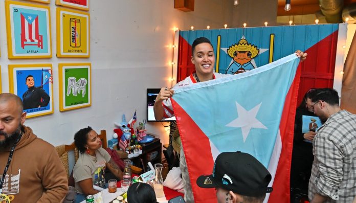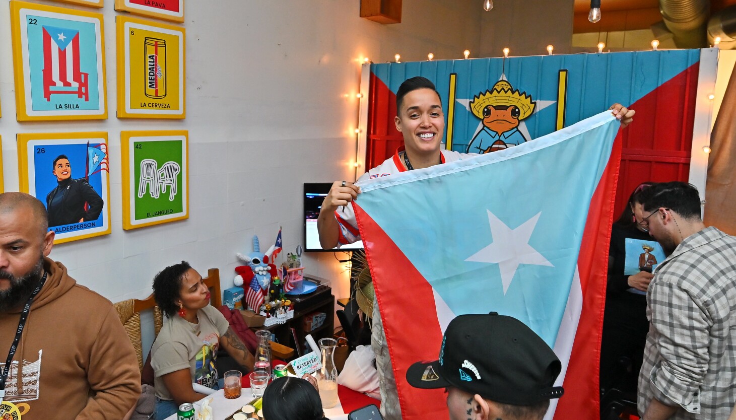 In Humboldt Park, Chicago’s largest Puerto Rican neighborhood, organizers of the annual Fiestas Puertorriqueñas hosted a watch party at their VIP Residencia pop-up space at 2701 W. Division St.