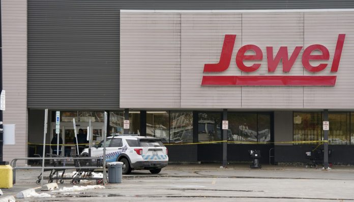 At the time, police said two men entered the Jewel and tried to steal three bouquets of flowers and a greeting card on display. As they were leaving the store, the security guard intervened. One of the robbers fired a gun in his direction, hitting the man and two others nearby, police said.