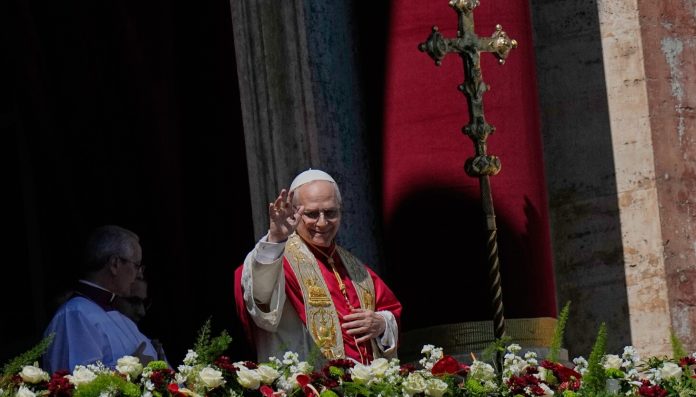 VATICAN CITY (AP) — Pope Leo XIV celebrated his first Easter Mass as pontiff with a call Sunday to lay down arms and seek peace to global conflicts through dialogue, but he departed from a tradition of listing the world’s woes by name in the Urbi et Orbi blessing from the loggia of St. Peter’s Basilica.